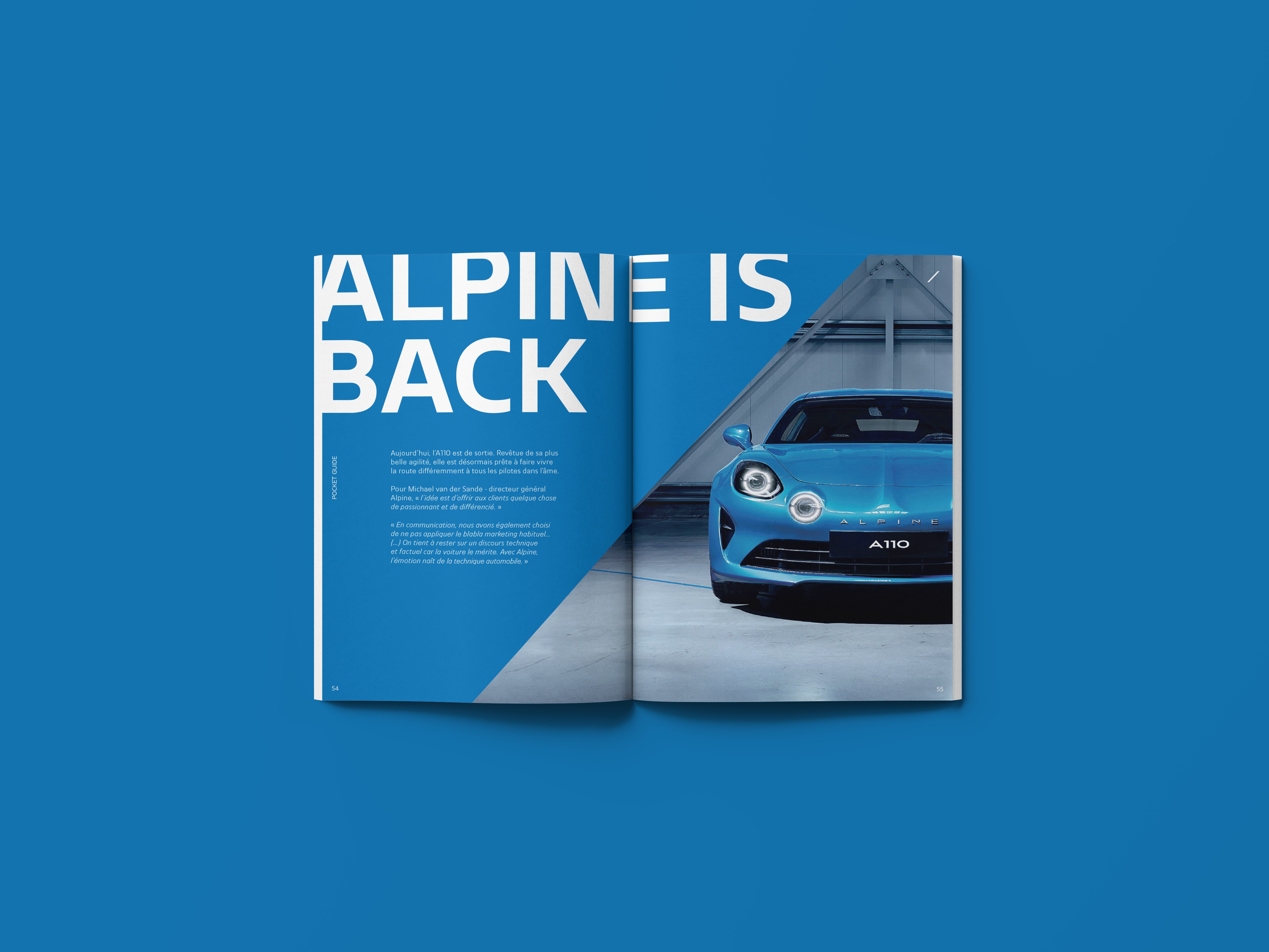 Creation of a pocket guide for Alpine, expressing the brand’s core mission: to flow with agility and efficiency from one bend to another, from curve to hairpin.