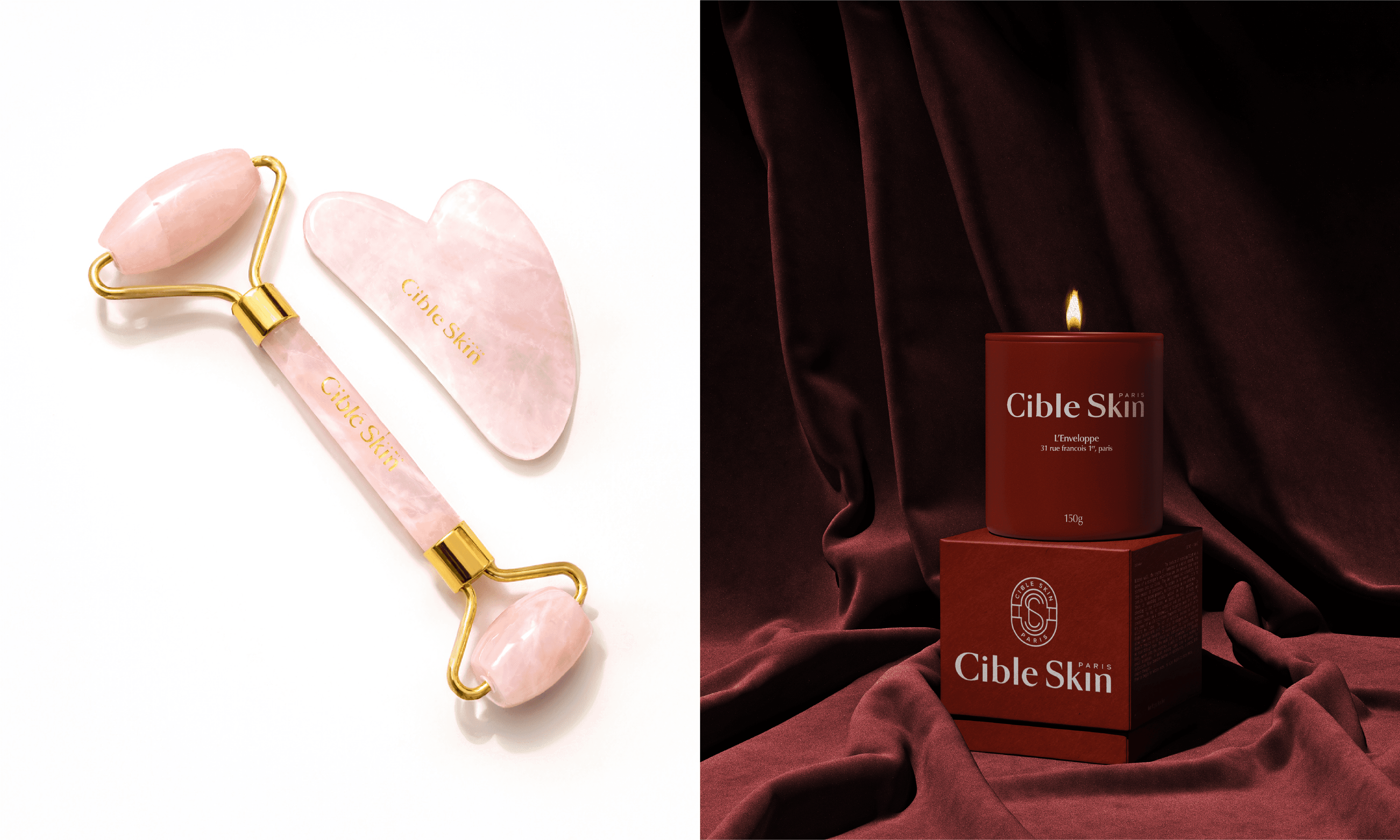 Beyond skincare, Cible Skin expanded into lifestyle beauty accessories. I designed a relaxed visual and experiential system, extending across silk eye masks, bedding, candles, gua sha tools, and hair accessories, transforming skincare into a multisensory daily ritual.